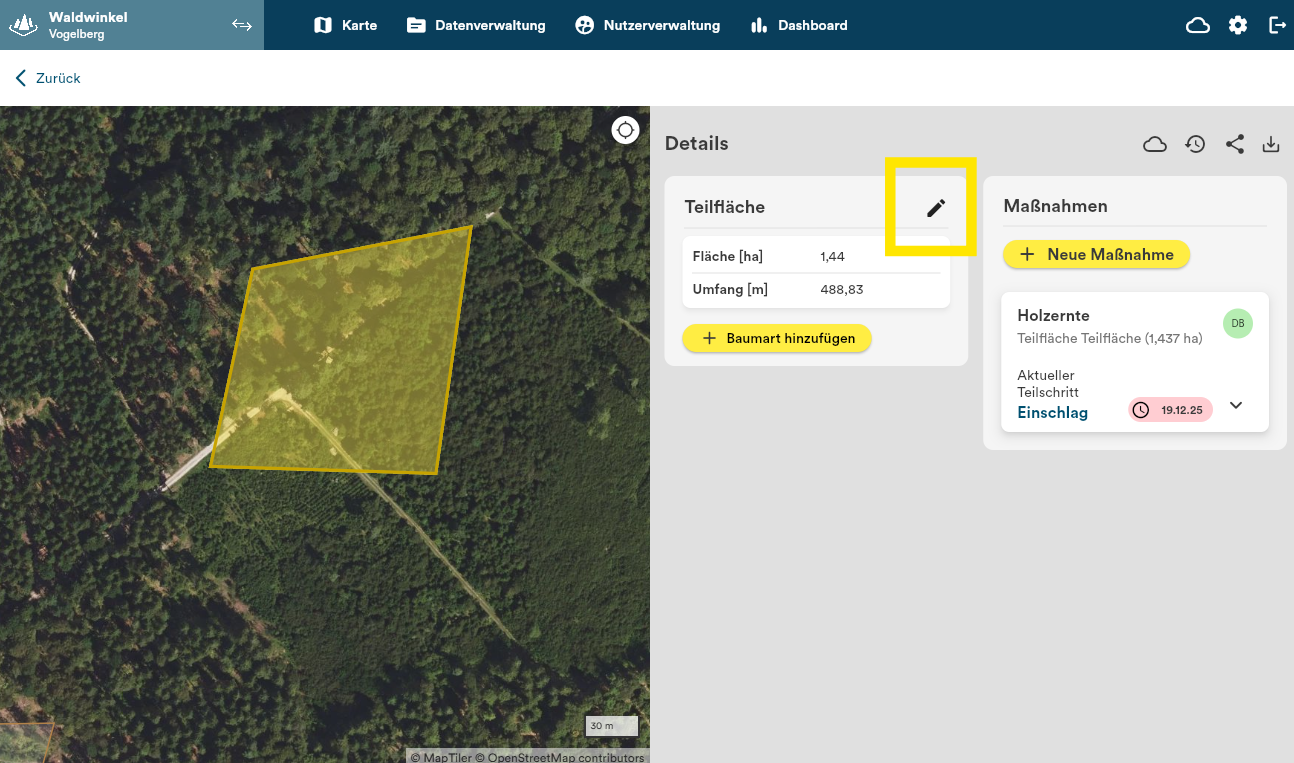 Nun können Sie alle Felder bearbeiten oder die Teilfläche löschen.