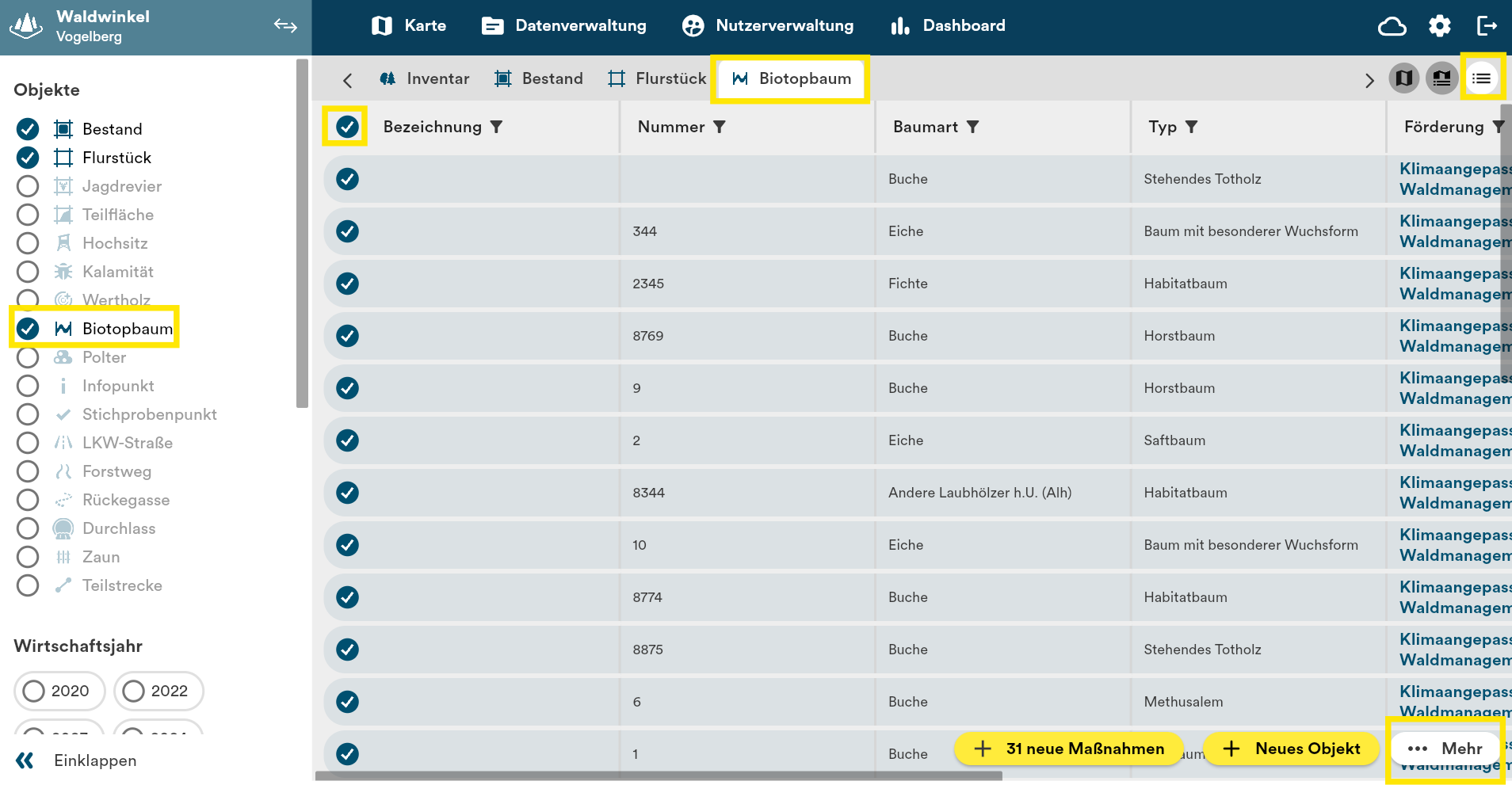 Kann ich Objekte, z.B. Biotopbäume, samt aller Daten herunterladen?