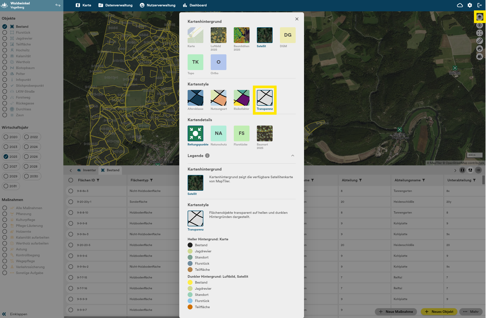 Im Bereich Kartenstyle wählen Sie die Option Transparenz.